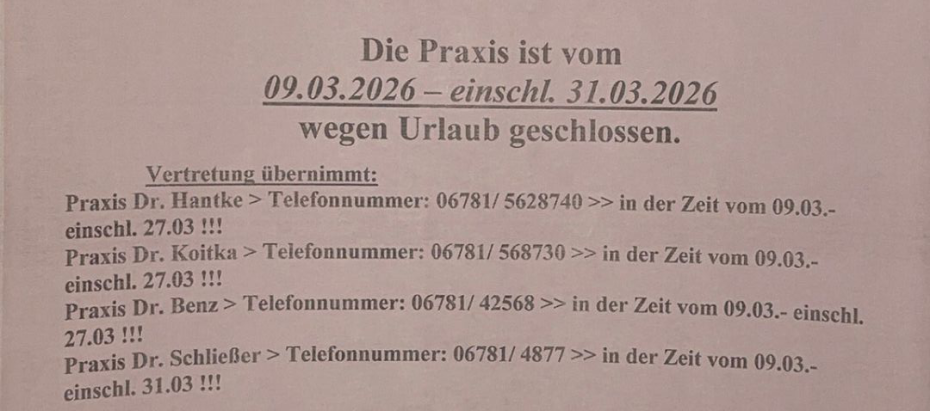 Ärztlicher Bereitschaftsdienst unter 116117 erreichbar!